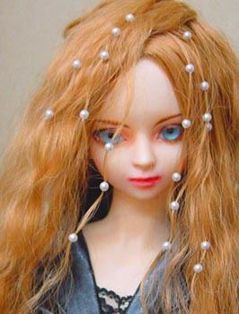 下、パ−ルで飾ったウイッグに変えてみました。