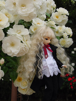 白い薔薇と、プラチナブロンドがきれいです。