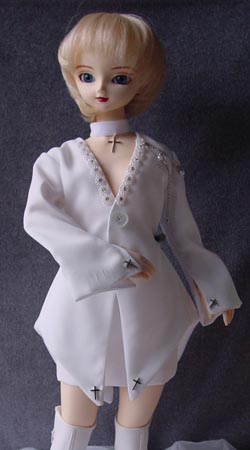 ほんとは白ブラウスは着て無かったんですが、無しでネクタイのみだとあまりに首が細くて、しかたなくブラウスつけました。