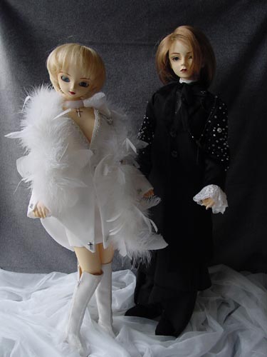 記念すべき、某天空城バンドの弦楽器隊のお二人をモチーフにした第一作めのペアドレスです。
