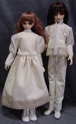 男の子はAライン、女の子はウエストから少しふくらんで、ダブルの打合せ。