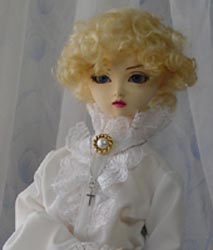 今回、クリクリ巻き毛の天使ヘア金髪ウィッグも手に入れておりましたが、う〜うちの凪君には難しいでしょうか。もっとクリスマス向けの天使ドレスでないとだめかなあ。