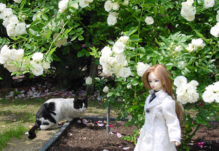 薔薇園の撮影中に、お客さま猫がやって来ました。